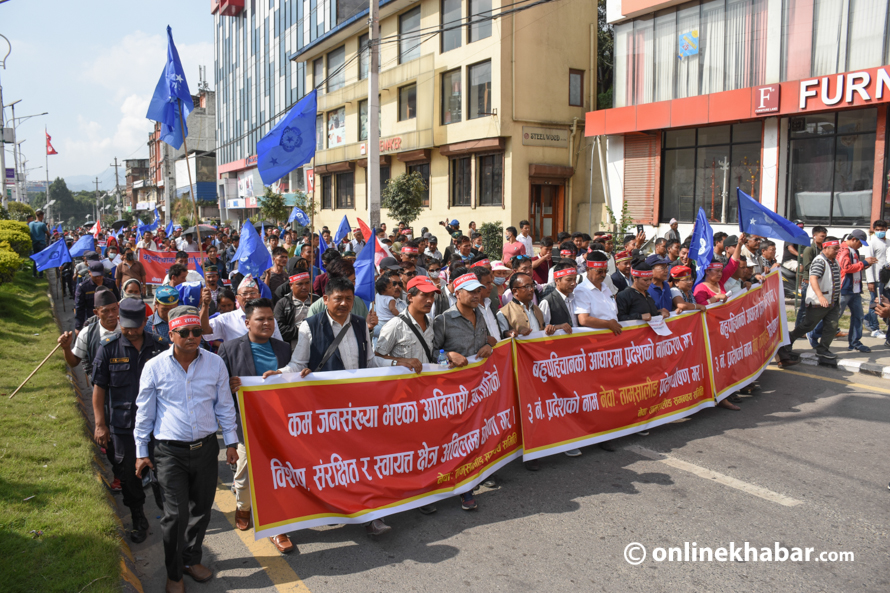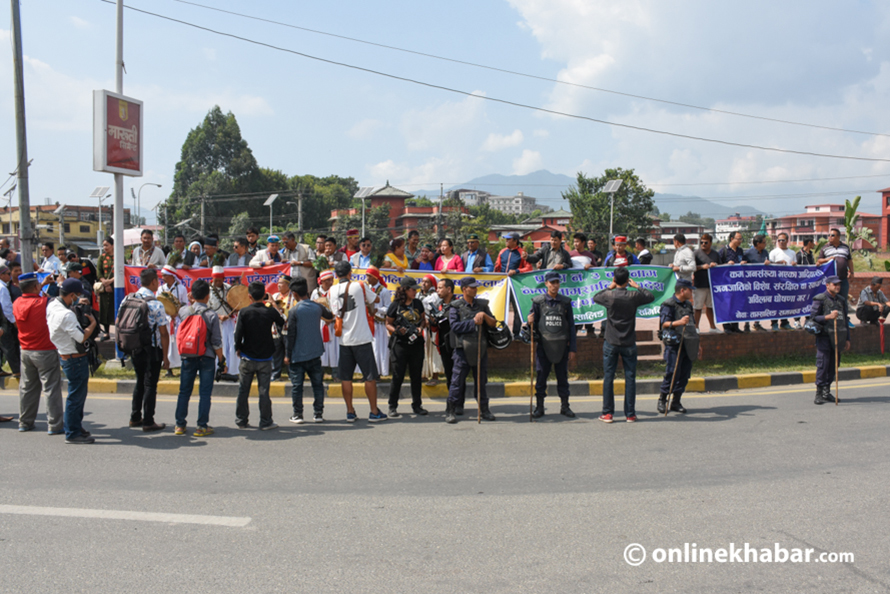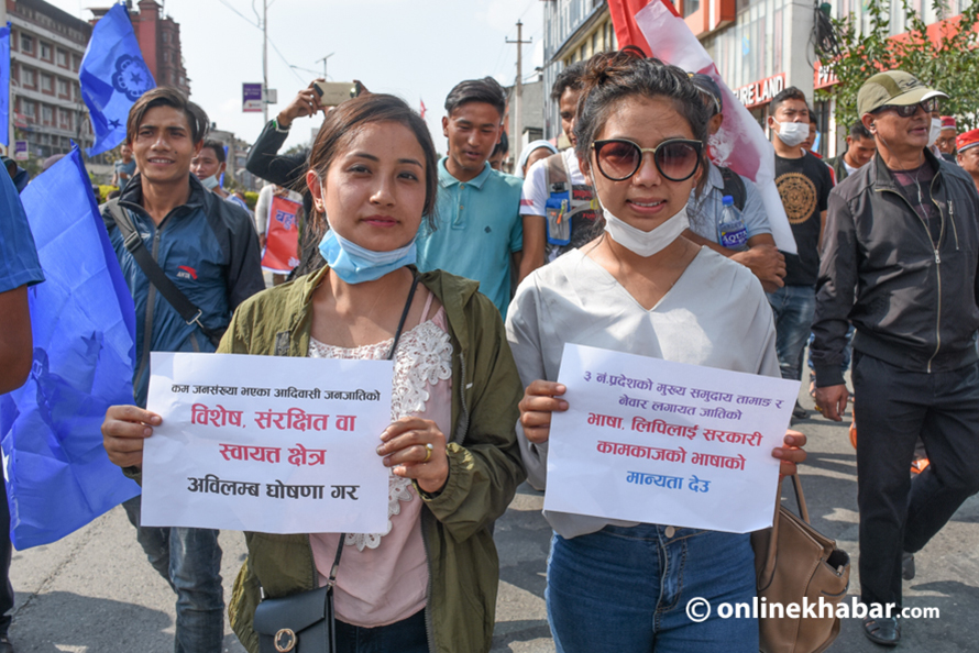 नेवारी र तामाङ समुदायको परम्परागत भेषभूषामा आएका प्रदर्शनकारीले कम जनसंख्या भएको समुदायलाई विशेष, संरक्षित र स्वायत्त क्षेत्र घोषणा नगरेको भन्दै सरकारविरुद्ध चर्का नाराबाजी पनि गरेका थिए ।