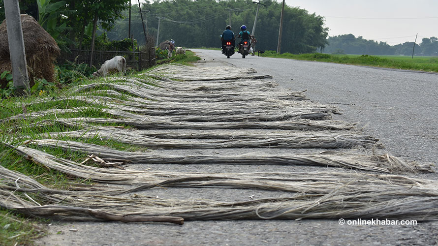 १८ असोज, विराटनगर । पाँच बिगाहामा जुट लगाएका झापा गौरादहका रमेश कार्कीले लगानी भन्दा कम आम्दानी भएपछि जुट अर्थात (पट्वा) खेती लगाउन छाडेका छन् । कार्कीले हाल धान खेती गर्दै आएका छन् ।