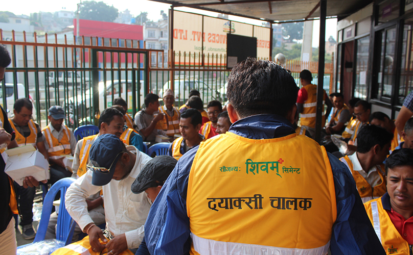 १८ असाेज, काठमाडाैं । सिमेन्ट उत्पादक कम्पनी शिवम् सिमेन्ट लिमिटेडले आफ्नो सामाजिक उत्तरदायित्व अन्तर्गत काठमाण्डौको ट्याक्सी चालकहरुको लागि पहिलो चरणमा चालक ज्याकेट उपलव्ध गराएको छ ।
