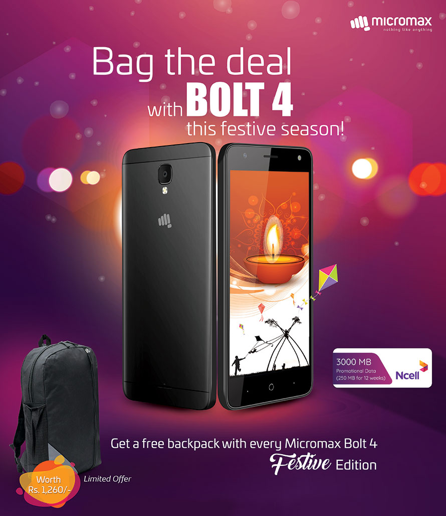 २५ असोज, काठमाडौं । माइक्रोम्याक्सले आफ्नो नयाँ प्रस्तुति क्यू ४००२ बोल्ट ४ लाइट ग्राहकहरुका माझ ल्याएको छ । माइक्रोम्याक्स स्टेट अफ दि आर्ट र बजेट अनुकुल फोनको लागि प्रसिद्ध छ । यो एउटा यस्तो ब्राण्ड हो जसमा ग्राहक पूर्णरुपमा निर्धक्क हुन सक्ने कम्पनीको विश्वास छ ।