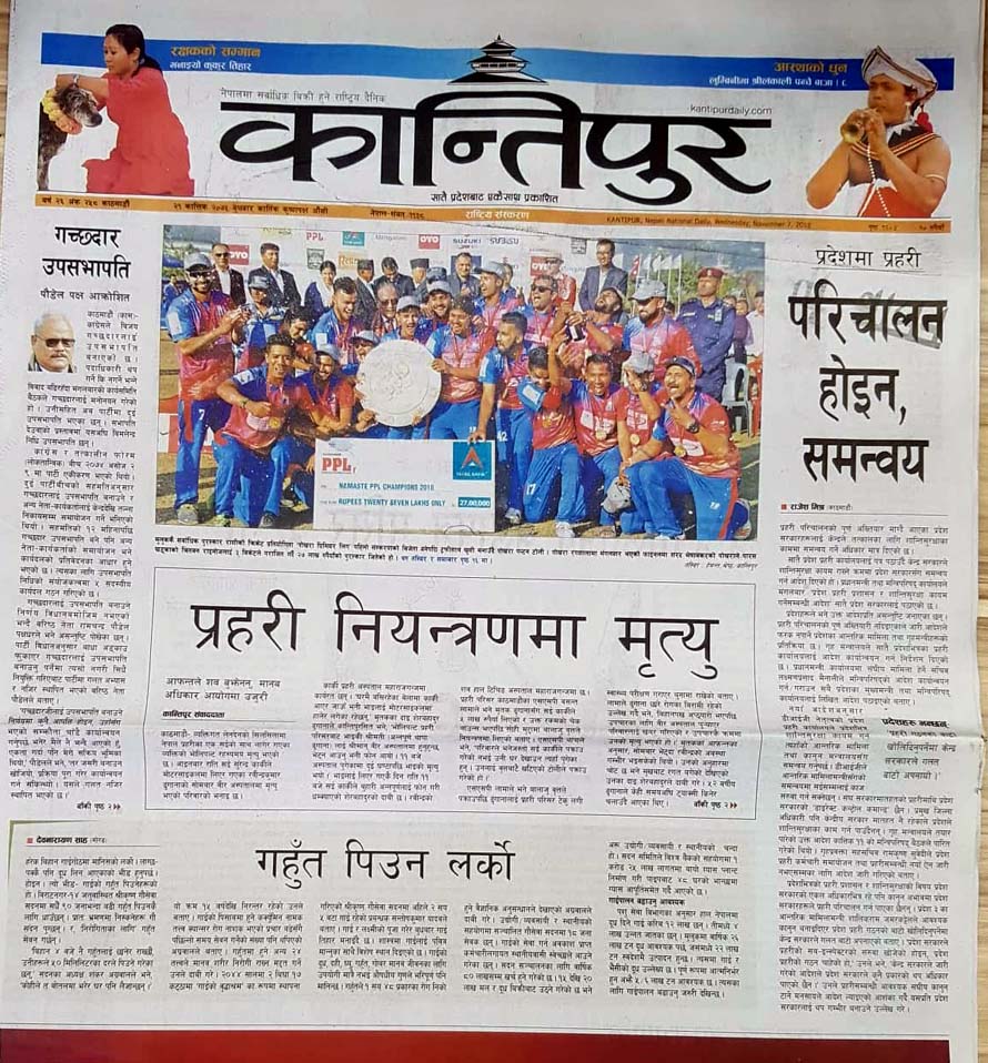 व्यक्तिगत लेनदेनको सिलसिलामा नेपाल प्रहरीका एक सईको साथ लागेर गएका व्यक्तिको भोलिपल्ट रहस्यमय मृत्यु भएकोलाई पनि कान्तिपुरले प्राथमिकताका साथ लेखेको छ । आइतबार राति सई सुरेन्द्र कार्कीले मोटरसाइकलमा लिएर गएका रवीन्द्रकुमार ढुंगानाको सोमबार वीर अस्पतालमा मृत्यु भएको परिवारको भनाइ छ ।