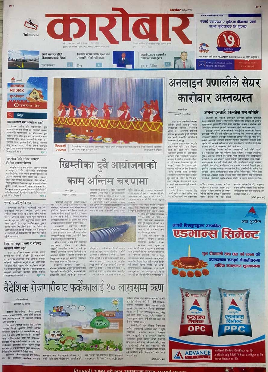 त्यसैगरी सरकारले सन् २०१८ लाई उच्चस्तरीय भ्रमण वर्ष माने पनि भारतीय प्रधानमन्त्री नरेन्द्र मोदीबाहेककाले भ्रमण नगरेको, अनलाइन प्रणालीले सेयर कारोबार अस्तव्यस्त बनेको, वैदेशिक रोजगारीबाट फर्केकालाई सरकारले १० लाखसम्म ऋण दिने भएकोलगायत समाचार पनि आजका पत्रपत्रिकामा हेडलाइन बनेका छन् ।