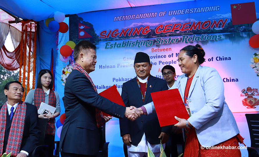 हाइनान प्रान्तको हाइकाव नगरपालिका र गण्डकीको राजधानी सहर पोखरा महानगरपालिकाबीच पनि मितेरी साइनो जोडिएको छ । हाइकाव नगरपालिकाका उपाध्यक्ष फान जोङली र पोखराकी उपमेयर मञ्जुदेवी गुरुङले दुई महानगरबीच मितेरी साइनो जोडिएको समझदारी पत्रमा हस्ताक्षर गरे ।