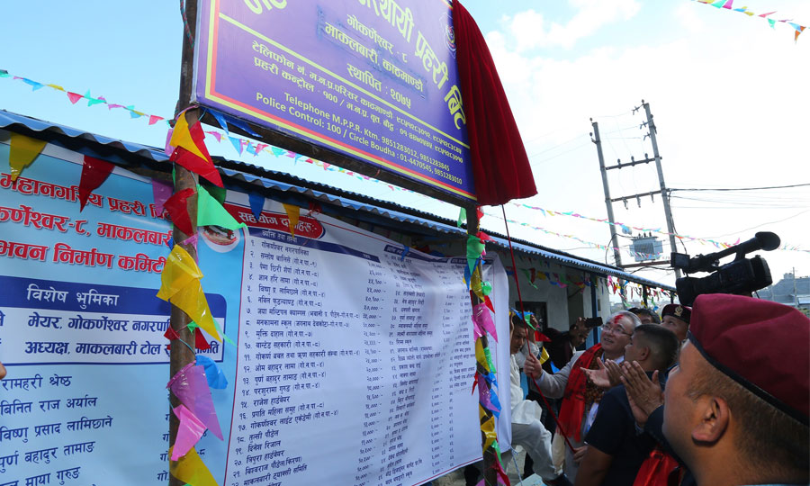 १२ असोज, काठमाडौं । गृहमन्त्री रामबहादुर थापा ‘बादल’ ले काठमाडौंको गोकर्णेश्वर नगरपालिका–८, माकलबारीमा अस्थायी प्रहरी बिटको उद्घाटन गरेका छन् । गोकर्णेश्वर नगरपालिका र माकलबारी टोल सुधार समितिको सहकार्य तथा स्थानीय संघसंस्था र जनताको सहभागितामा ८ लाख ७४ हजार ३ सय ७० रुपैयाँको लागतमा निर्माण गरिएको अस्थायी प्रहरी बिटको गृहमन्त्रीले उद्घाटन गरेका हुन् । बिटको उद्घाटन […]