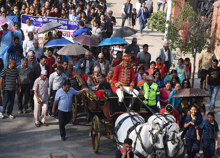 अभिनन्दन अघि उनलाई निवास देखि राष्ट्रिय सभागृहस्थल सम्म लावा लस्कर, बाजा गाजा र झाँकी सहित घोडाबग्गीमा राखेर रथारोहण सहित नगर परिक्रमा गराईएको थियो ।