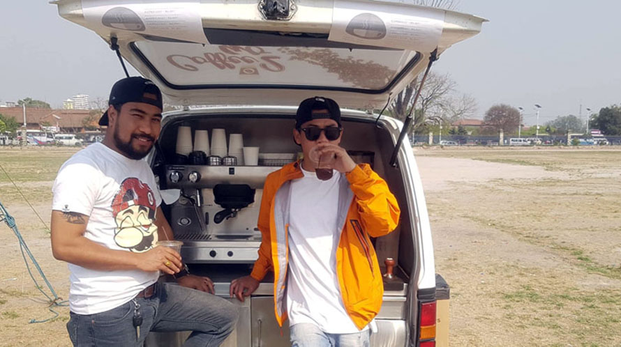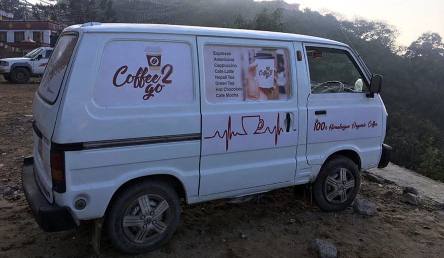पहिलो चरणमा उनीहरुले एउटा थोत्रो भ्यान किने, साढे तीन लाखमै । कफी मेसिनलाई राम्ररी अड्याउनका लागि करिब एक लाख २० हजार खर्चिएर भ्यानको पछाडिको भागमा डन्डी र पाताहरू राखियो । त्यसपछि डबल हेड मेसिन किने ।