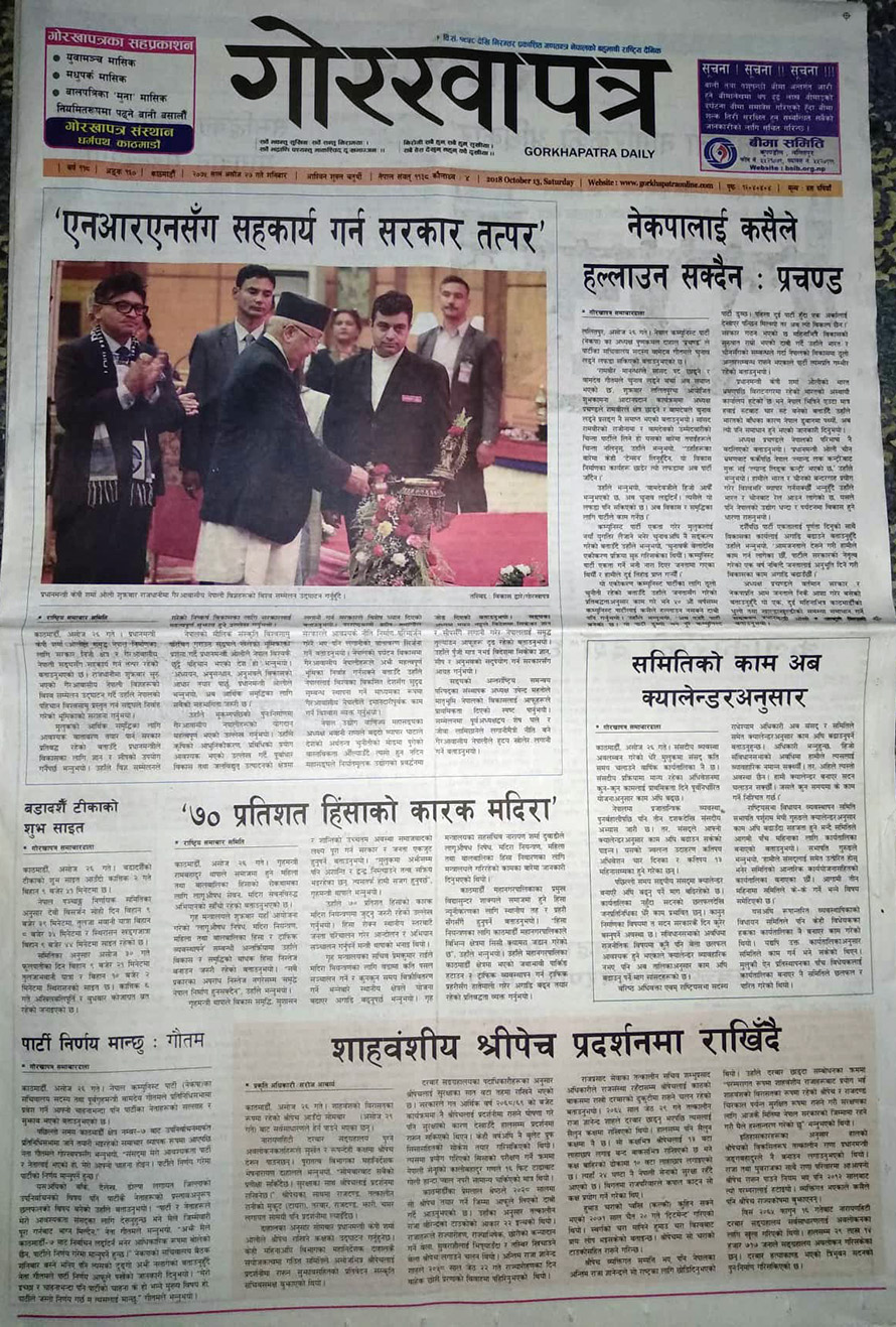 यही समाचार गोरखापत्र दैनिकमा पनि छ ।