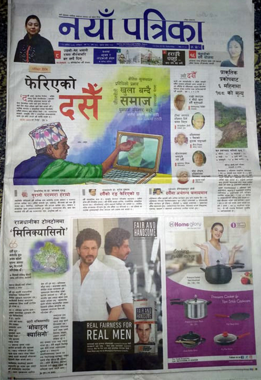 नयाँ पत्रिका दैनिकले ‘राजधानीका टोलटोलमा मिनि क्यासिनो’ शीर्षकको समाचारलाई पहिलो पृष्ठमा छापेको छ । क्यासिनोकै शैलीमा चलाइएको जुवाखालमा लाखौं हारजित हुने गरेको समाचारमा उल्लेख छ ।