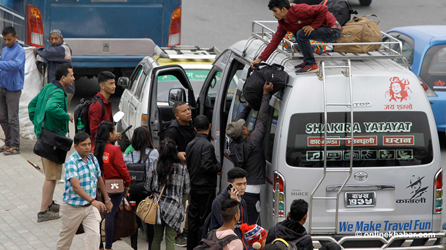 ३० असोज, काठमाडौं । दशैंमा घर जाने रहर जति हुन्छ, यार्वजनिक यातायातको यात्रा त्यति नै कष्टपूर्ण हुन्छ ।