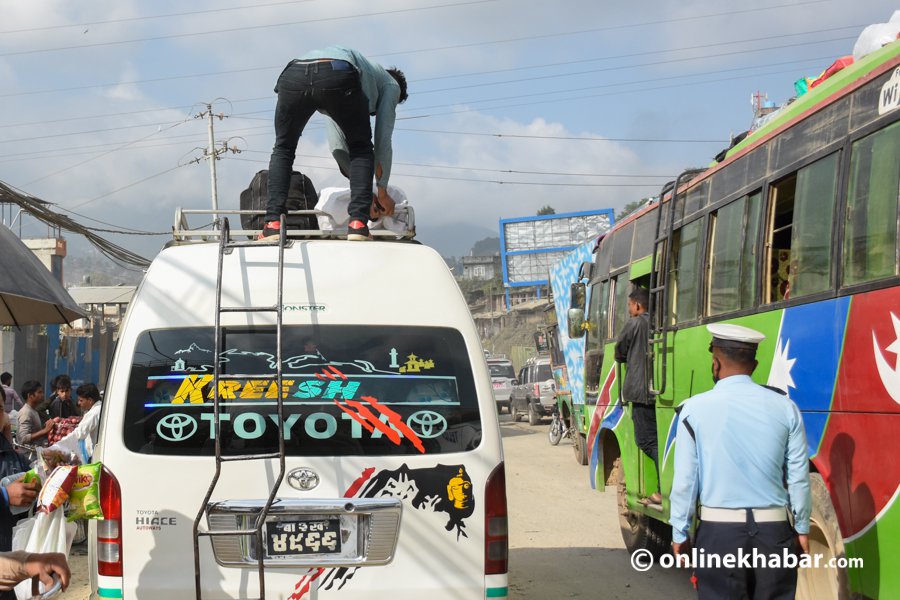 सँगै छतभरि समान र यात्रु राख्ने र ढोकासम्मै यात्रु झुण्डाएर लिएर हिँड्ने दृश्यलाई प्रहरी र ट्राफिक प्रहरीले पनि दशैंमा समान्यरुपमा व्यवहार गर्ने गरेको पाइन्छ ।