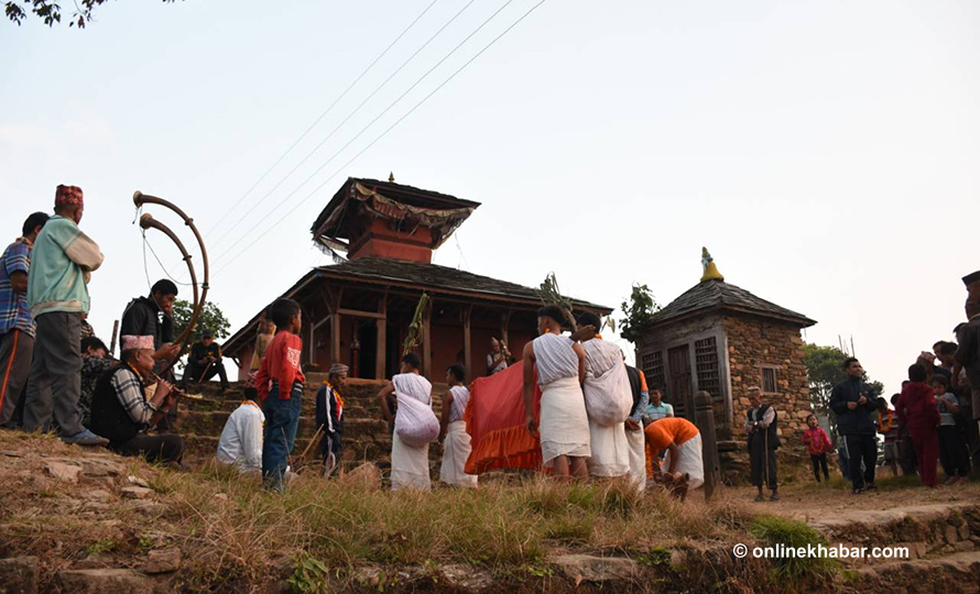 आज भित्र्याएको फूलपाती दशमीको दिनमा बाजागबजाका साथ विसर्जन गरिन्छ ।