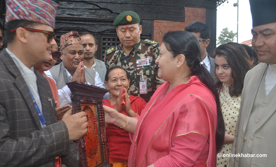 ३१ असोज, काठमाडौं । आज नवरात्रीको ८ औं दिन राष्ट्रपति विद्यादेवी भण्डारीले काभ्रेको पाचखाल-९ मा रहेको पलाञ्चोक भगवतीको दर्शन तथा पूजा गरेकी छन् ।