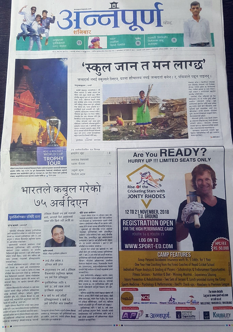 पुनर्निर्माणबाट दाताहरु पन्छिँदै गएपछि सरकार फेरि दाता सम्मेलन गर्न तम्सिएको समाचार अन्नपूर्ण पोष्ट दैनिकमा छ । भूकम्पमा भत्किएका संरचना पुनर्निर्माणका लागि भारतले दिने भने को ७५ अर्ब रुपैयाँ नआउने दाबीसहित अन्नपूर्णले समाचार लेखेको छ ।