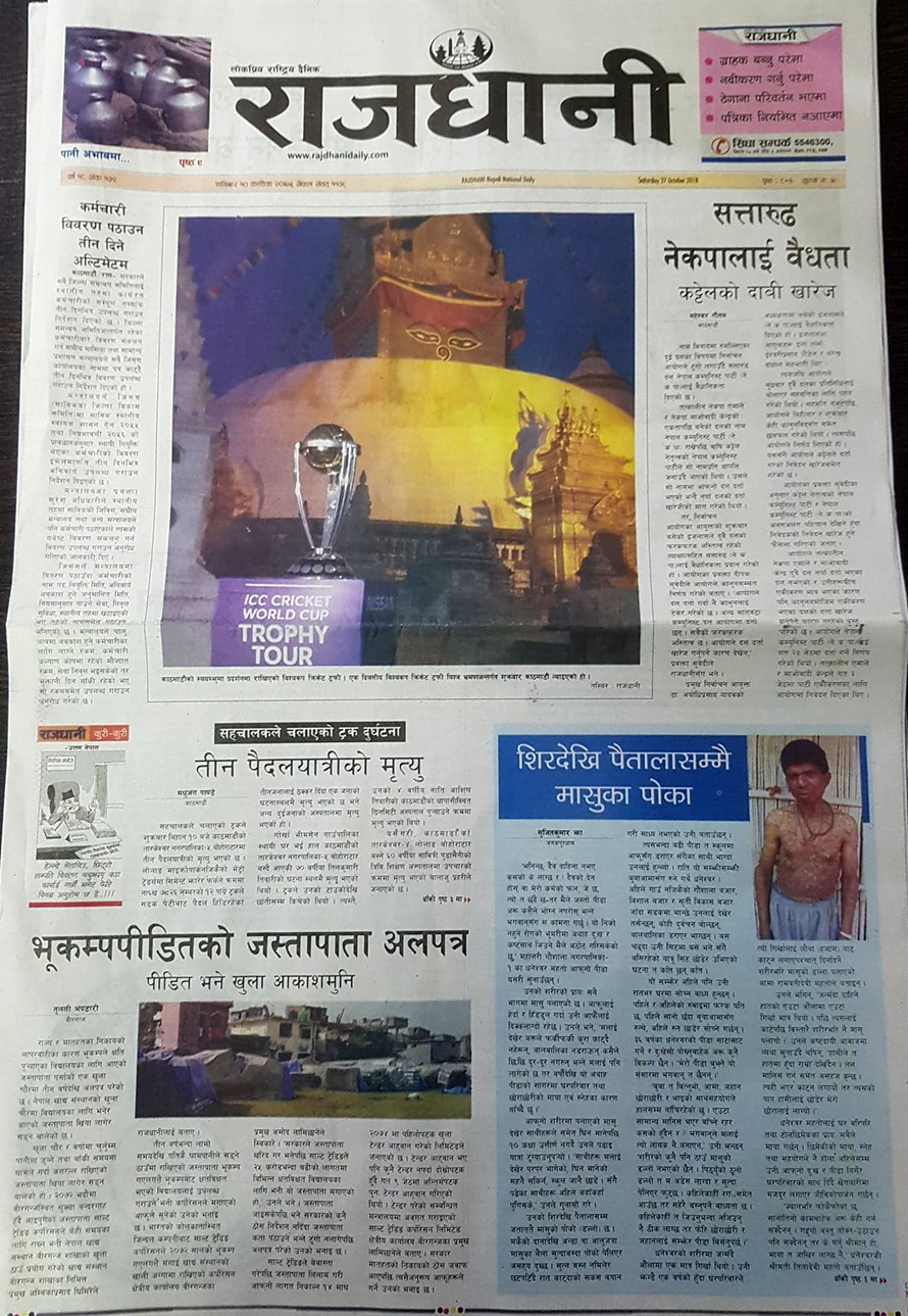 त्यसबाहेक सैनिक भर्नामा भ्रष्टाचार, संघ-प्रदेश कानुन विवाद, तीन महिनामा काठमाडौंमा चेक बाउन्सका एक हजार मुद्दा र पुनर्निर्माणबाट दाताहरु पन्छिन थालेको लगायतका समाचारहरु पनि आजका पत्रिकाहरुका फ्रन्टपेजमा छन् ।