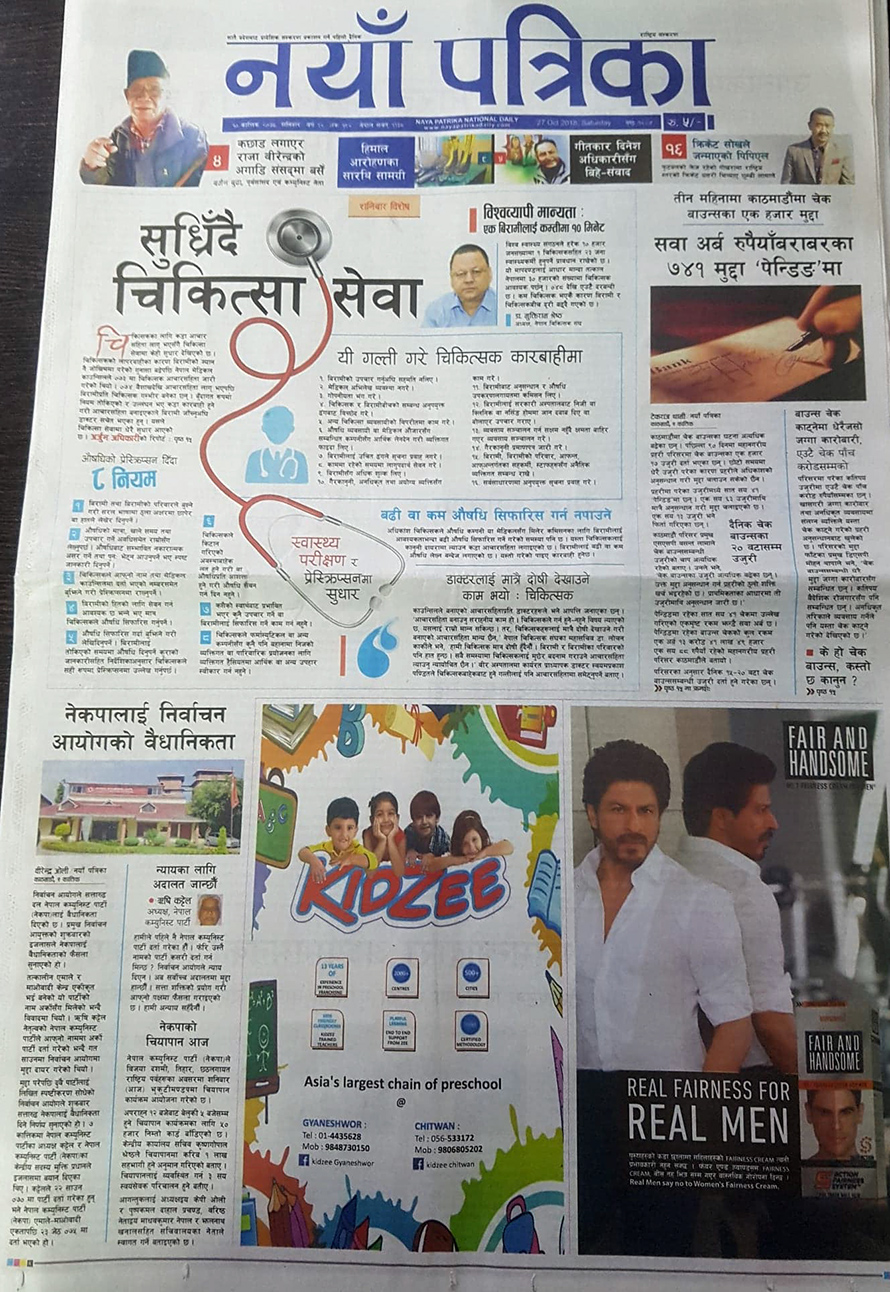 नयाँ पत्रिकाले चिकित्सक सेवा सुध्रिँदै गएको विषयलाई मुख्य समाचार बनाएर छापेको छ ।