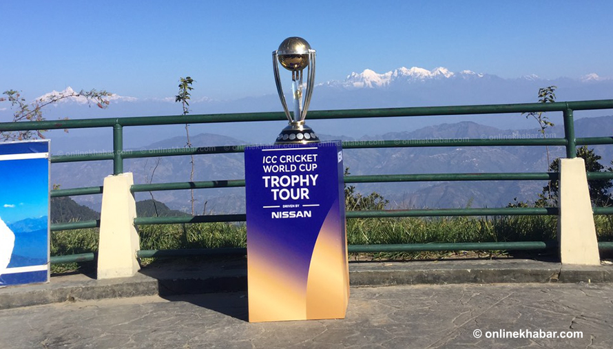 एक सय दिने विश्व भ्रमणमा रहेको विश्वकप ट्रफी दुबईबाट शुरु भई ओमान, अमेरिका, वेष्टइण्डिज, श्रीलङ्का, पाकिस्तान र बङ्गलादेश हुँदै नेपाल ल्याउन लागिएको बताइएको छ ।