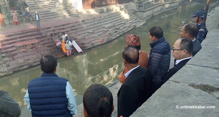 मन्त्री कुलासेगरनले पूजापछि बागमती किनारमा शवदाह गरिएकाे दृश्य केहीबेर अवलाेकन गरेका थिए ।