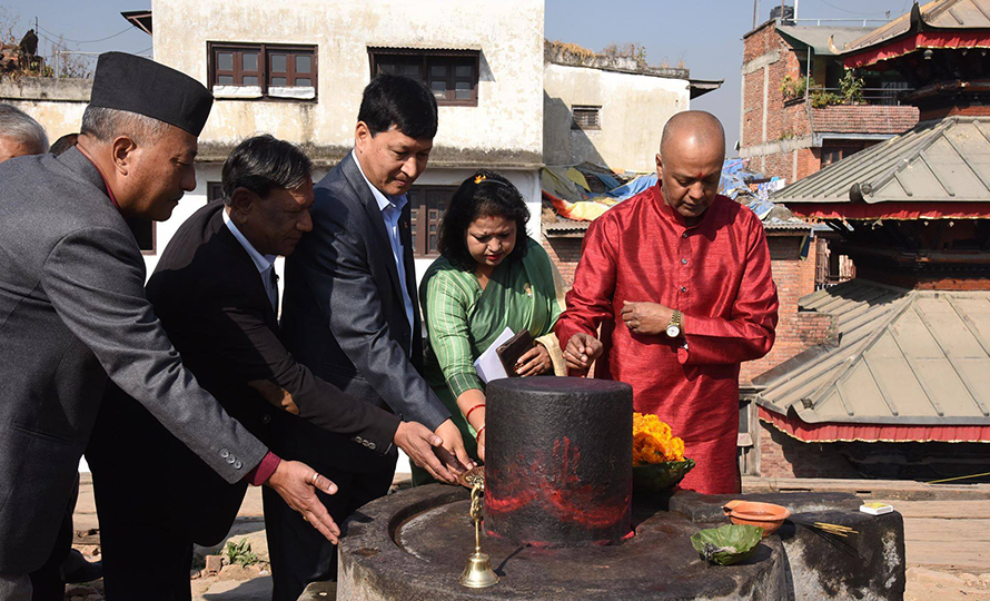 हनुमानढोका नजिकैको कुमारीघर र काष्ठमाण्डपकै आसपासमा रहेको माजु देवलको पुनर्निर्माण कार्य शुभारम्भ गर्दै मेयर शाक्यले समयमै काम सम्पन्न गर्ने ठेकदारलाई निर्देशन समेत दिए । ‘हिजो जे-जस्तो अवस्था रहेपनि अब त्यस्तो हुँदैन,’ उनले ठेकदारप्रति लक्षित गर्दै भने, ‘अबका दिनमा हामीले त्यस्तो सुन्नु नपरोस् ।’