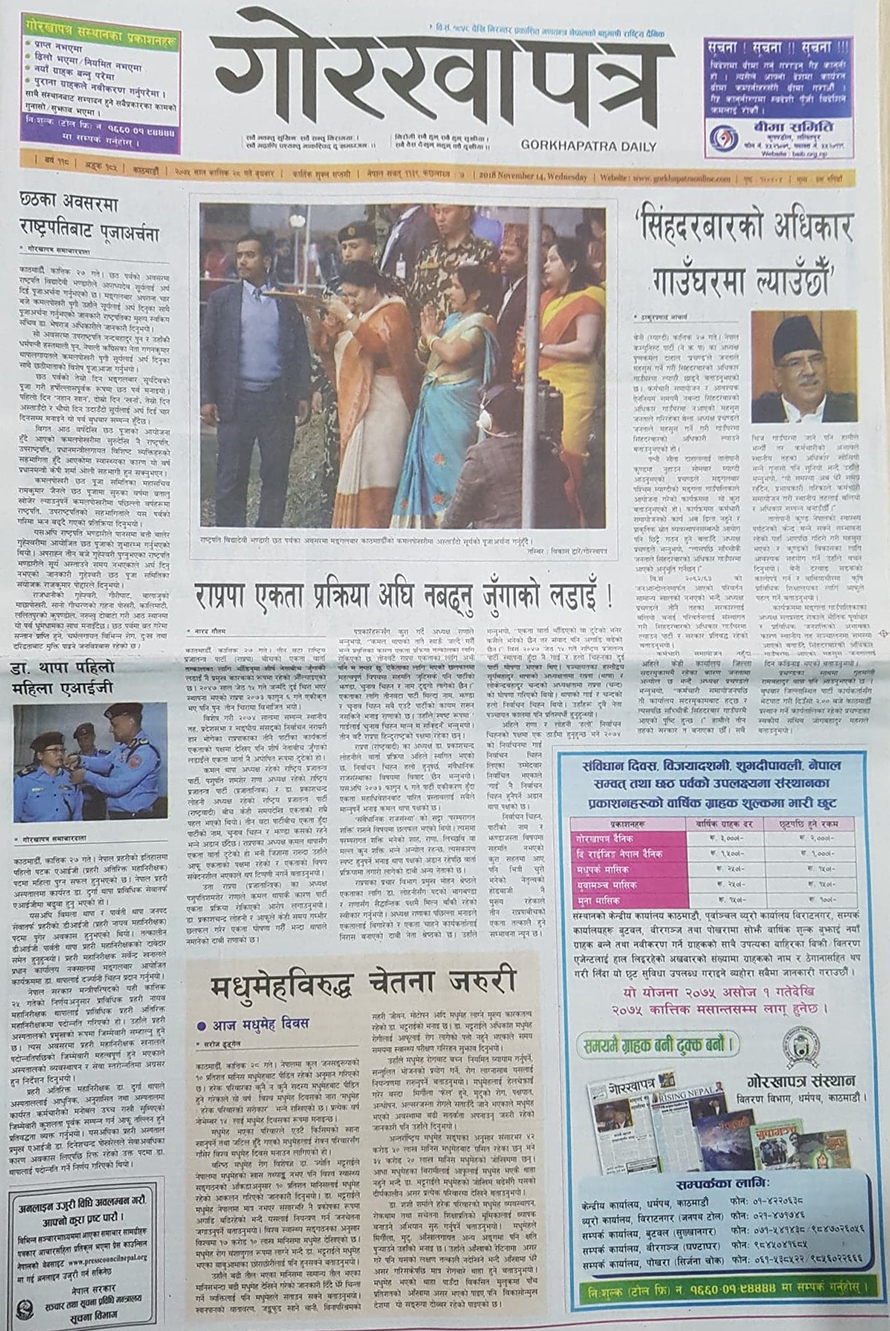 नागरिकले संघीयतासँगै भीआईपी थपिएपछि सुरक्षाकर्मी तेब्बर बढी खटाउनुपर्ने भएको लेखेको छ भने गोरखापत्रमा राप्रपा एकता प्रक्रिया भाँडिनुको विश्लेषण छ ।